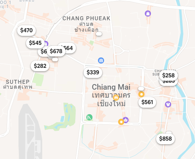 One of Chiang Mai’s greatest attractions is its affordability. Digital nomads can live comfortably for under $1,000 a month, making it one of the most budget-friendly hubs globally. Renting a one-bedroom apartment costs between $250-600/month, and daily expenses remain low, with street food priced at $1-3 per meal and dining in restaurants costing $5-10. Groceries are similarly affordable, running around $100-150/month. Transportation is cheap as well, with motorbike rentals costing about $60-100/month, and local transport options like songthaews are available for around $1 per ride. Utilities, including internet, average $50-100/month, with internet speeds between 100-300 Mbps, making it easy to stay connected. Here is a look at monthly Airbnb rates near Chiang Mai city center: