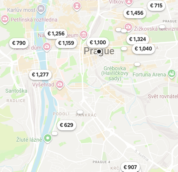 Speaking of affordability, life in Prague is surprisingly easy on the wallet. Renting a one-bedroom apartment in the city center will run you between €700 and €1,400 per month (snapshot below), but if you venture a bit further out, you’ll find places for as little as €500 to €800. Groceries cost around €200-300/month, and dining out is a treat—local meals are just €5-10, while a nicer dinner will only set you back €20-30. And getting around is a breeze with an efficient public transportation system of trams, buses, and the metro, with a monthly pass priced between €20-30. Even utilities, including high-speed internet, are pretty reasonable at €100-150/month.